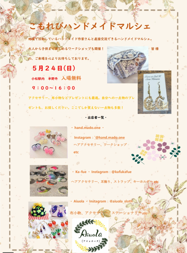 ハンドメイド商品の制作、販売、マルシェ主催をしております。